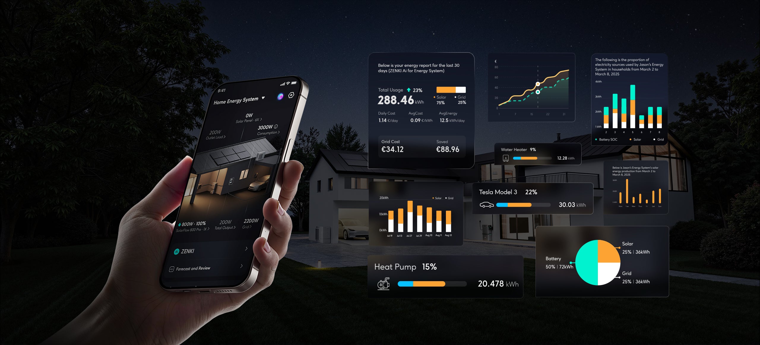 The HEMS (Home Energy Management System) is designed to transform your home into a smart and green living space.  By seamlessly connecting and optimizing every aspect of your home’s energy—from production and storage to consumption, Zendure’s AI-Powered HEMS delivers precise energy management, significantly lowers electricity costs, enhances energy efficiency, and empowers you with an intelligent energy system for sustainable living.