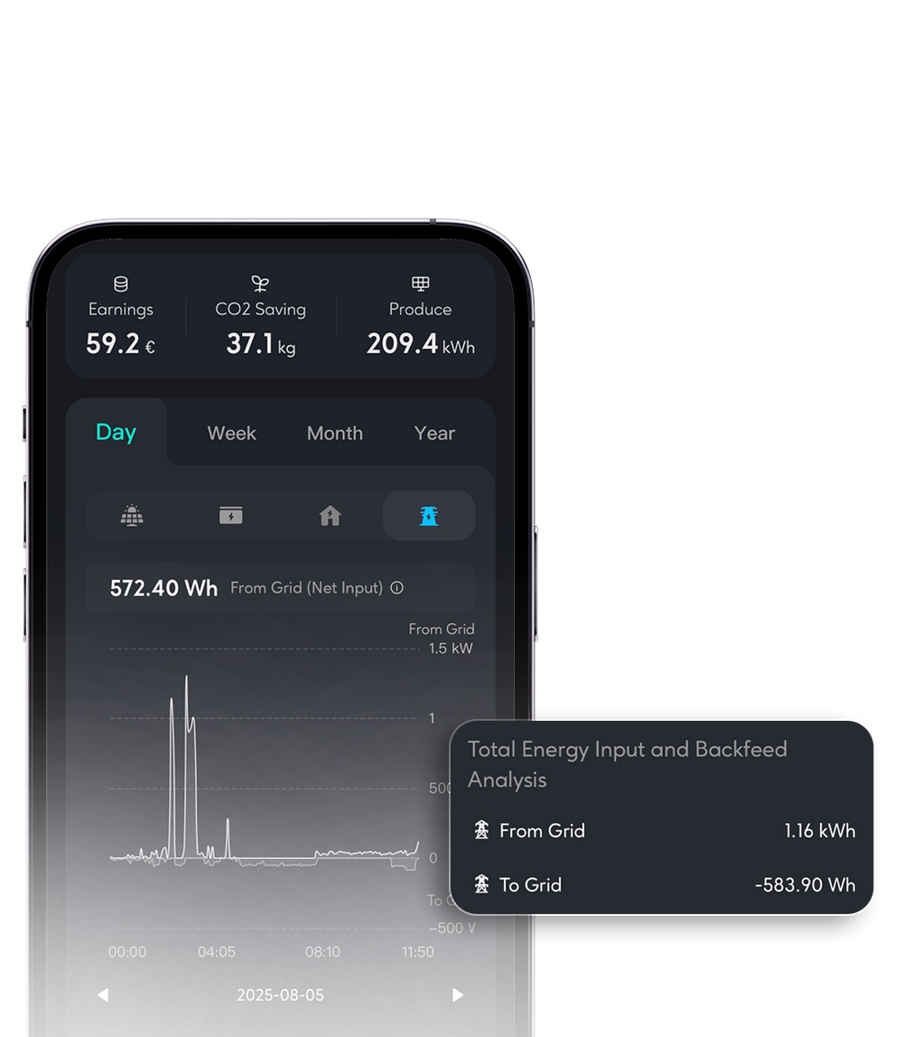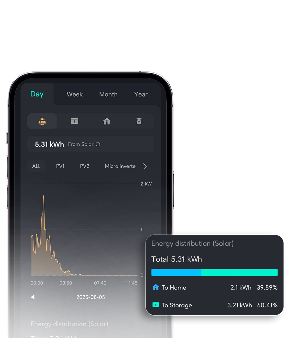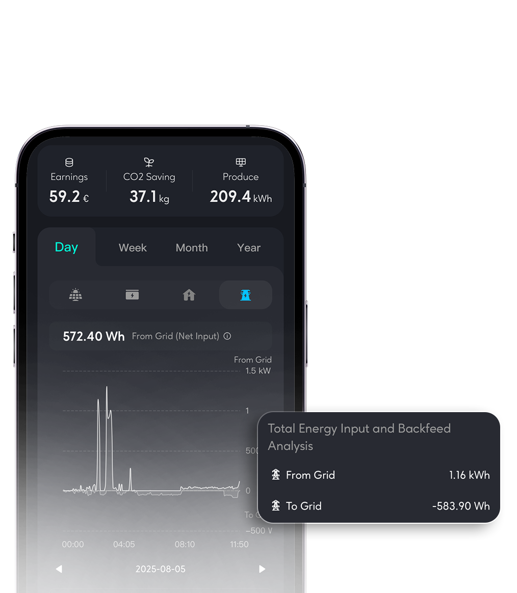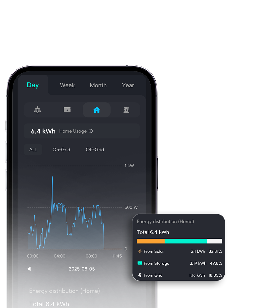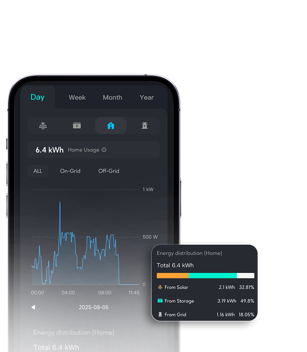 HEMS connects with your smart devices for fully automated operation across scenarios like EV charging and heat-pump control. (Coming soon)